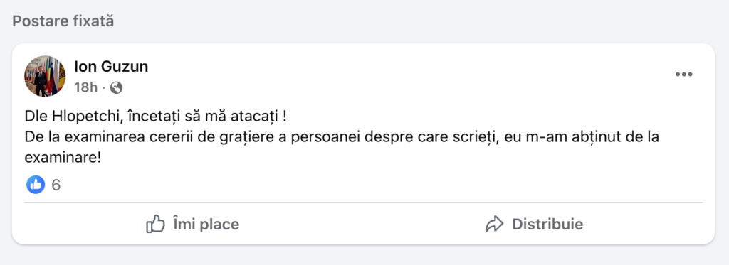 Contactat telefonic, Ion Guzun nu a răspuns apelului redacției NewsMaker. Întrebat într-un mesaj text câți membri ai Comisiei pe care a condus-o în 2022 și-au dat votul pentru grațierea lui Șepeli și cum a fost argumentată cererea de atunci, înaintată șefei statului, Ion Guzun ne-a îndemnat să adresăm „toate întrebările la comisia de grațiere din cadrul Președinției”.