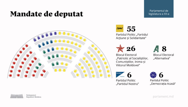 Amintim că, în urma alegerilor parlamentare din 28 septembrie, șase forțe politice au acces în legislativ. Este vorba despre PAS care a obținut 55 de mandate, asigurându-și astfel majoritate parlamentară, Blocul „Patriotic”, cu 26 de mandate, Blocul „Alternativa”, cu 8 mandate și „Partidul Nostru” și Partidul „Democrația Acasă”, cu câte 6 mandate.