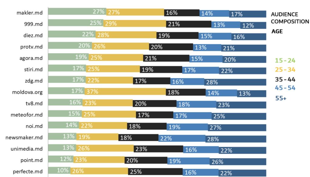 Compoziția publicului NewsMaker după vârstă a fost următoarea: 13% aveau 15-24 de ani, 19% aveau 25-34 de ani, 18% aveau 35-44 de ani, 22% aveau 45-54 de ani și 28% aveau 55+. Distribuția timpului pe site pe grupe de vârstă a fost: 3% aveau 15-24 de ani, 8% aveau 25-34 de ani, 13% aveau 35-44 de ani, 30% aveau 45-54 de ani și 46% aveau 55+. Distribuția vizualizărilor pe grupe de vârstă: 7% aveau 15-24 de ani, 14% aveau 25-34 de ani, 17% aveau 35-44 de ani, 27% aveau 45-54 de ani și 35% aveau 55+.