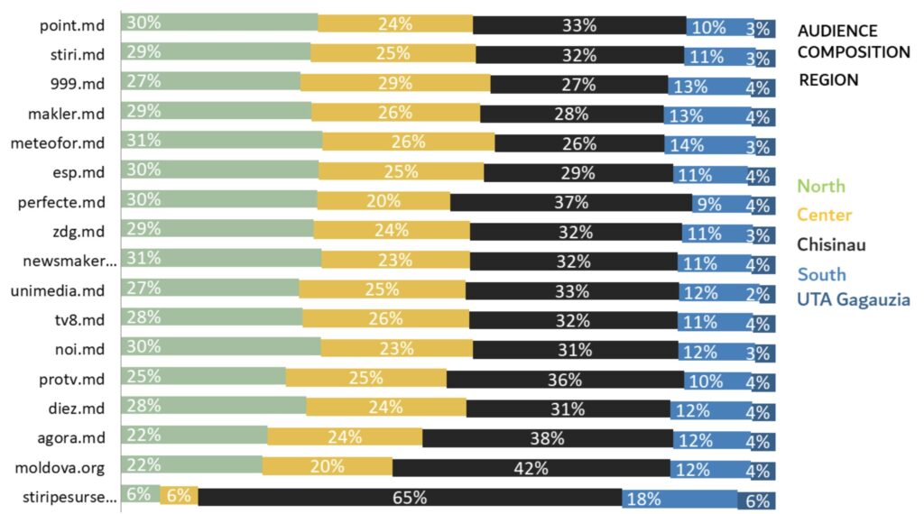 Distribuția publicului NewsMaker pe regiuni a fost următoarea în decembrie: 31% erau din nord, 23% erau din centru, 32% erau din Chișinău, 11% erau din sud și 4% erau din Găgăuzia. Distribuția timpului pe site pe regiuni a fost: 28% – nord, 19% – centru, 36% – Chișinău, 12% – sud și 5% – Găgăuzia. Distribuția vizualizărilor pe site pe regiuni a fost: 30% – nord, 20% – centru, 34% – Chișinău, 11% – sud și 5% – Găgăuzia.