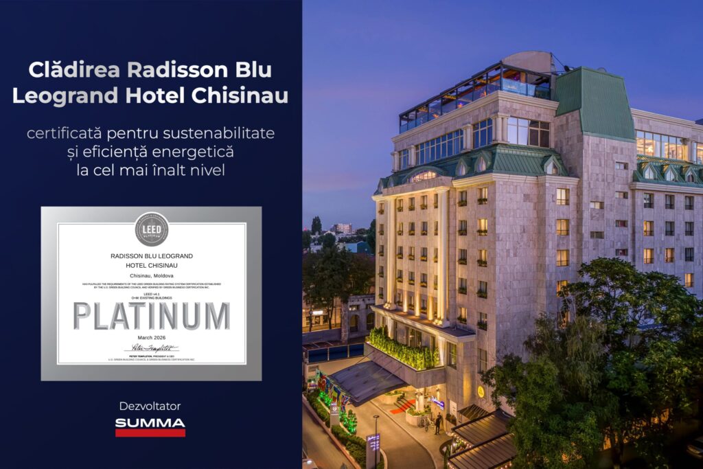 Compania internațională de construcții Summa, activă pe piața locală din 1996, marchează o nouă etapă în implementarea principiilor de sustenabilitate, după certificarea la nivel LEED Platinum a cinci obiective din Chișinău