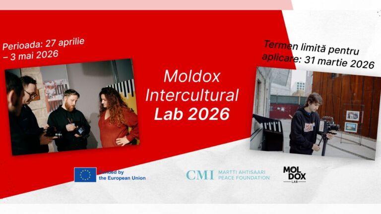 MOLDOX в партнёрстве с CMI – Фонд мира Мартти Ахтисаари объявляет о проведении первого Moldox Intercultural Lab 2026 — практического воркшопа по документальному кино, посвящённого межкультурному диалогу, многообразию и укреплению социальной сплочённости в Молдове. Воркшоп пройдет в Кишинёве с 27 апреля по 3 мая 2026 года и станет первым таким