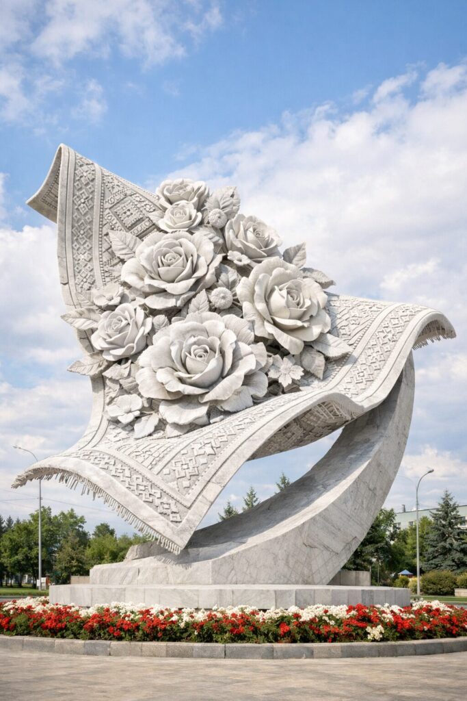 Еще приходит в голову традиционный молдавский ковер с розами, моя любовь. Например, скульптура летящего полотна, из которого растут объемные цветы, переплетенные с национальными орнаментами.