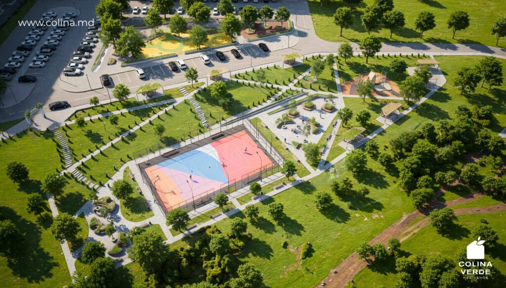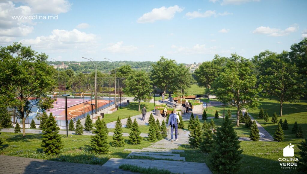 Проект предусматривает оперативную связь с объездной дорогой, частный детский сад и частную школу, а также близость к современному спортивному комплексу и стадиону. Для отдыха предусмотрены два парка — частный парк эксклюзивно для жильцов и большой зелёный парк с амфитеатром; дополнительно обустроим зоны для прогулок с питомцами, тихие зоны для отдыха и смотровую площадку с панорамным видом на природу. Инфраструктуру дополнят зарядные станции для электромобилей, а продуманная озеленённость и расположение обеспечивают один из самых чистых видов и воздуха в Кишинёве.